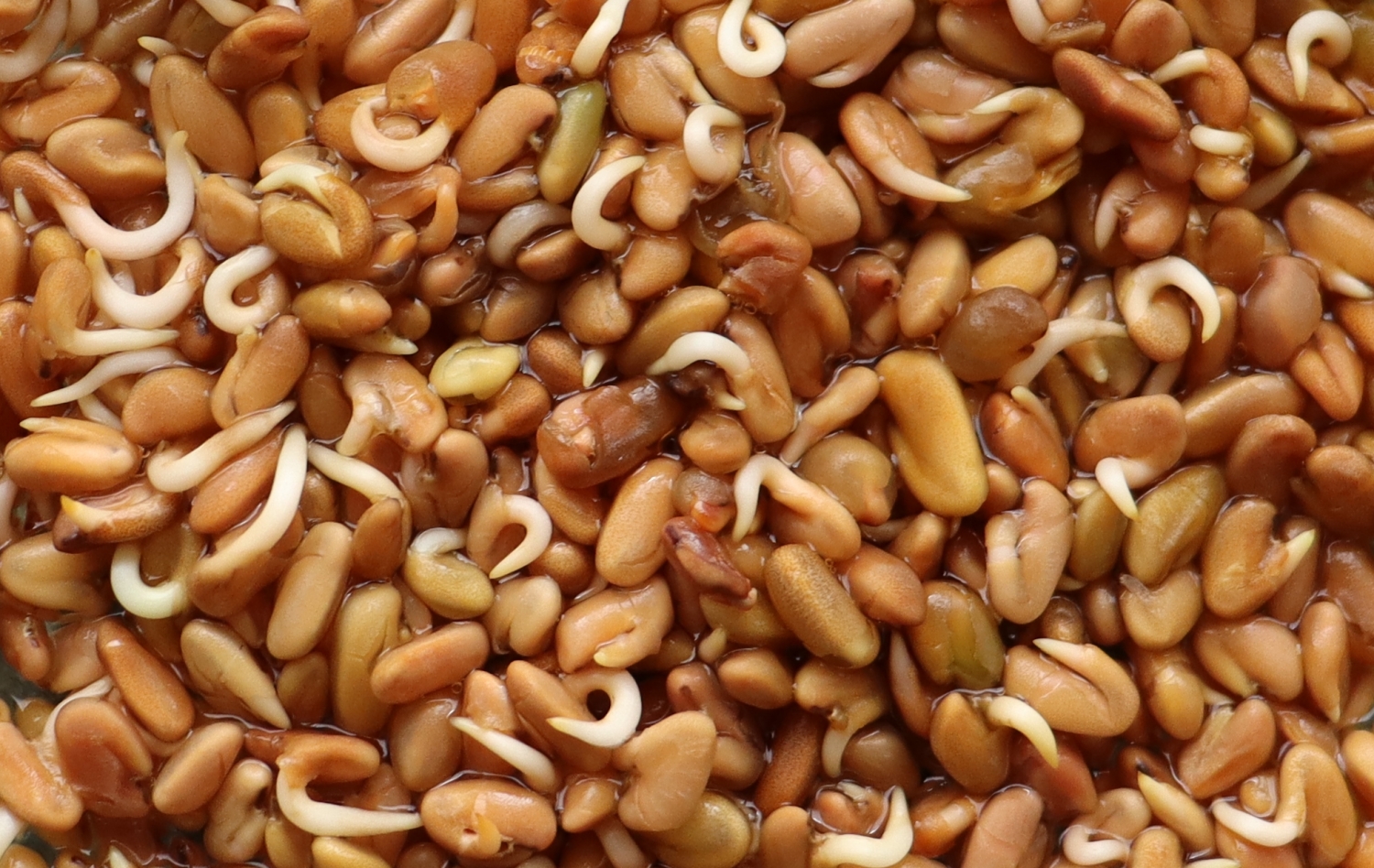 Bockshornsamen nach der Keimung (Sprossen), zum Vergrössern anklicken. Foto © PharmaWiki