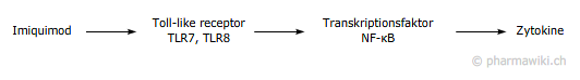 ImidazochinolineImiquimod ist ein Wirkstoff aus der Gruppe der Immunmodulatoren, der zur lokalen Behandlung von Feigwarzen, Basaliomen und aktinischen Keratosen zugelassen ist. Imiquimod hat immunstimulierende Eigenschaften, aktiviert Immunzellen und fördert die Bildung von Zytokinen. Es liegt als Creme in Sachets zum Einmalgebrauch vor. Zu den häufigsten möglichen unerwünschten Wirkungen gehören lokale Hautreaktionen. Imiquimod kann systemische Nebenwirkungen wie zum Beispiel Infektionskrankheiten, Kopfschmerzen, Muskelschmerzen und Müdigkeit verursachen.synonym: Imiquimodum