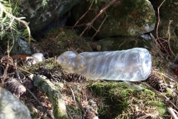Falsch entsorgte Plastikflasche in einem kleinen Park in Olten, ein Plastiksack am Meer in Zadar in Kroatien und eine Plastikflasche im Val Medel, zum Vergrössern anklicken. Fotos © PharmaWiki