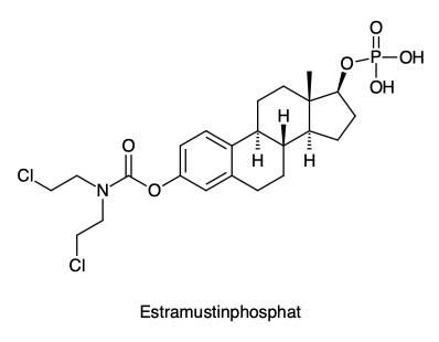 Zytostatika Estramustinphosphat ist ein Wirkstoff aus der Gruppe der Zytostatika für die Behandlung eines Prostatakarzinom im fortgeschrittenen Stadium. synonym: Estramustini phosphas, Estramustini phosphas dinatricus monohydricus