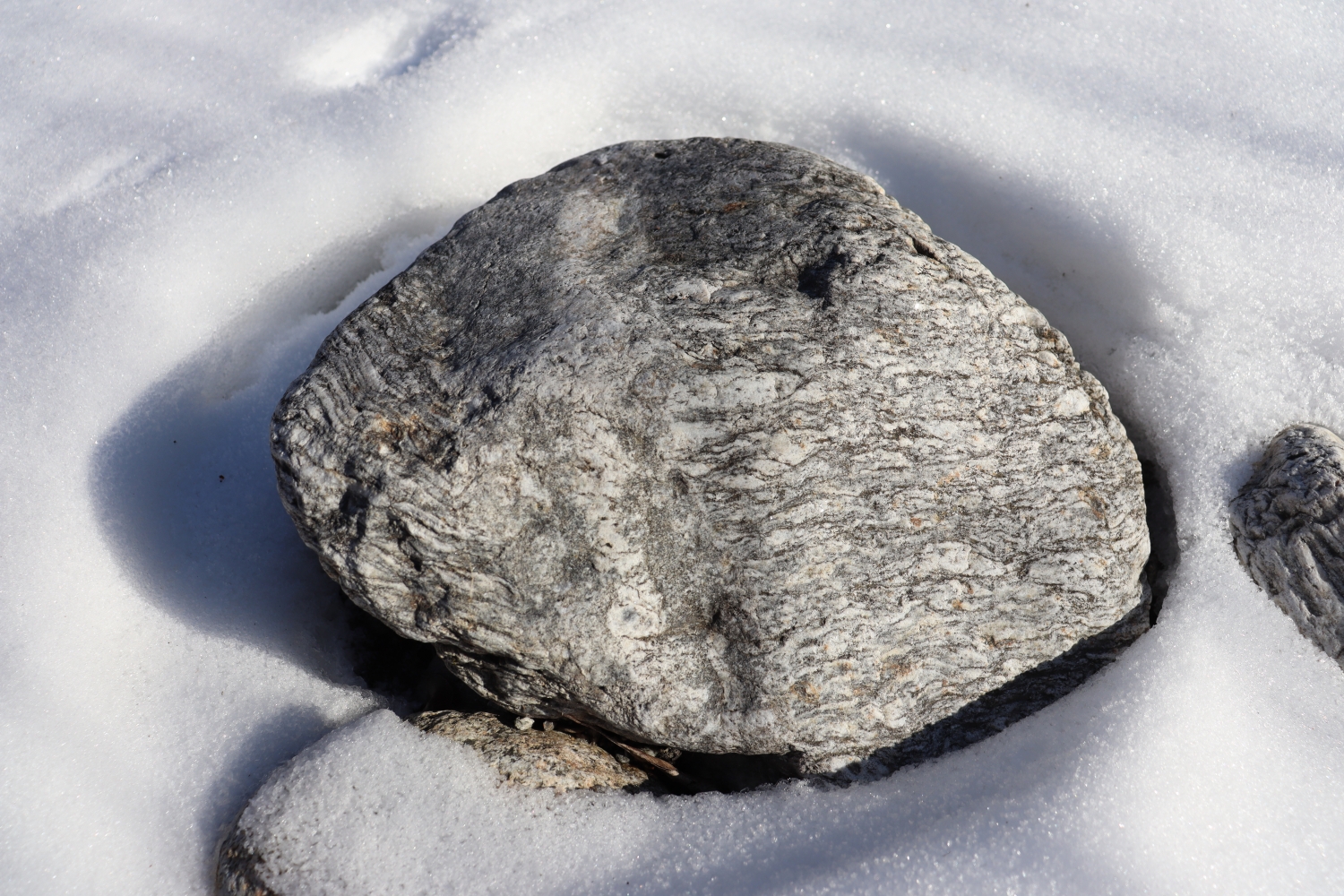 Gneis in Fontanivas, ein metamorphes Gestein. Zum Vergrössern anklicken. Foto © PharmaWiki