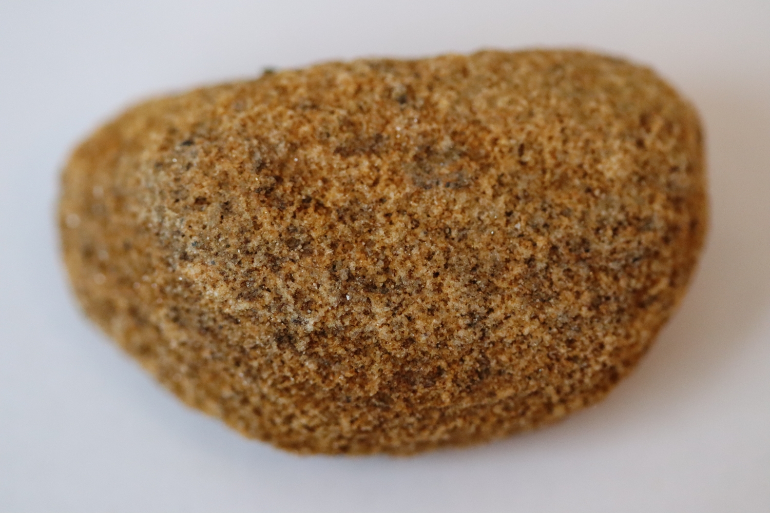 Sandstein aus dem Val Medel, ein Sedimentgestein. Die Sandkörner sind erkennbar und lösen sich relativ leicht vom Gestein. Zum Vergrössern anklicken. Foto © PharmaWiki