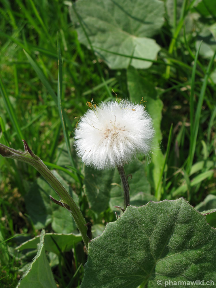 Huflattichblätter und -blüte, zum Vergrössern anklicken. Fotos © PharmaWiki