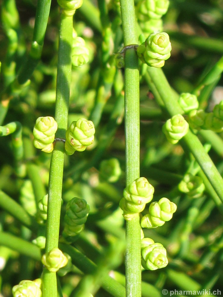 ArzneidrogeAls Arzneidroge wird das Kraut der Pflanze verwendet (Ephedrae herba)