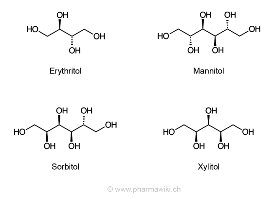 Zuckeralkohole, zum Vergrössern anklicken. Illustration © PharmaWiki